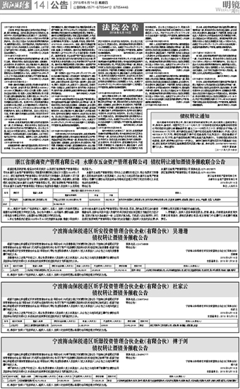 浙江省浙商资产管理有限公司 永康市五金资产管理有限公司 债权转让通知暨债务催收联合公告