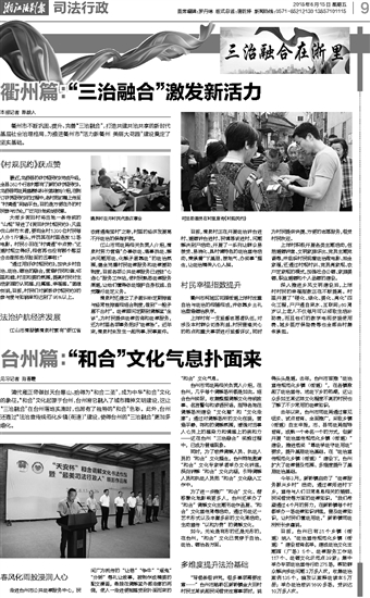 如今,无论是有形的还是无形的,在台州,“和合”文化已贯穿于自治、法治、德治各方面。
