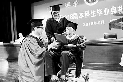 儿子带瘫痪父亲上大学 如今一起毕业“领证”