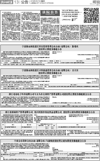 浙江亳垒电子科技有限公司与义乌市文清资产管理有限公司债权转让暨债务催收联合公告