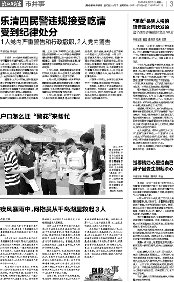 乐清四民警违规接受吃请 受到纪律处分