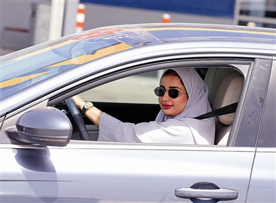 当天,沙特女性迎来政府解除女性驾车禁令、允许女性开车上路的第一天。去年9月,沙特国王萨勒曼宣布从2018年6月起允许女性开车。今年6月4日,沙特交通部门开始向该国女性发放驾照。
