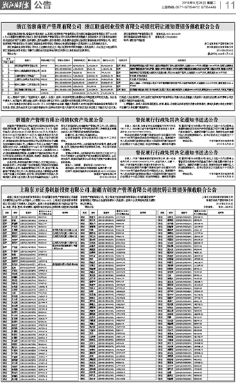 浙越资产管理有限公司债权资产处置公告