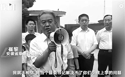安徽省阜阳市阜南县委书记崔黎喊话“你们小孩上不了学就找我”的视频在网络热传。当地宣传部表示,崔书记电话已被打爆,“显得很疲劳,可以说对工作稍微有一点影响” 。接访中心则称“规定是一个月一次,他一个星期一次”。工作人员说:“书记向社会承诺的事情,他会做到。”