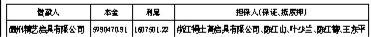 附件一:贷款债权明细表 基准日:2016年8月31日 单位:人民币元 注:清单中“担保人”包括保证人、抵押人、出质人,担保人的担保范围以签署的合同等法律文件约定为准。如公告中债务人、合同编号、债权金额、担保人等信息与事实不符的,以签署的合同等法律文件约定为准。若借款人、担保人因各种原因更名、改制、歇业、吊销营业执照或丧失民事主体资格的,请相关承债主体及/或主管部门代位履行义务或履行清算责任。 |