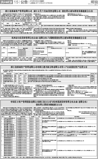 浙江省浙商资产管理有限公司 浦江古艾兰实业投资有限公司 债权转让通知暨债务催收联合公告