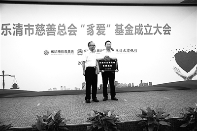 本报讯 近日,乐清市慈善总会“豸爱”基金成立暨捐赠仪式在乐清市农商银行举行,这是温州市首创、全省先行的司法救助专项基金,乐清市农商银行定向向乐清市慈善总会捐赠1000万元,成立“豸爱”基金,该基金专款专项用于救助法院涉民生“执行不能”的执行案件当事人。