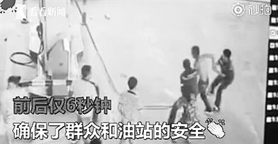 男子欲点燃加油站油枪 两员工神反应夺枪