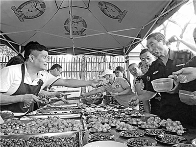 白鹿亭的运行,离不开白鹿会志愿者的无私付出。白鹿会成员王勤俊带着上小学六年级的儿子一起到现场帮忙,分发白粥和小菜,“凌晨4点多就开始忙活了,看到大家吃得很满意,再辛苦都是值得的。”王勤俊说。