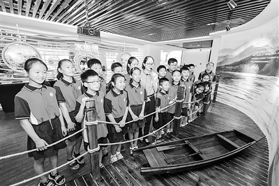 7月2日,长兴县第四小学的学生们在党员志愿者的带领下参观河长制主题展示馆。作为河长制发源地,长兴打造了全国第一个河长制主题展示馆,涵盖了河长制的历史演变、工作成效、现代管理等内容。