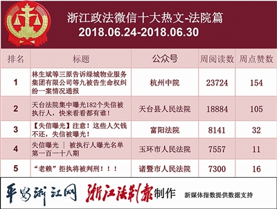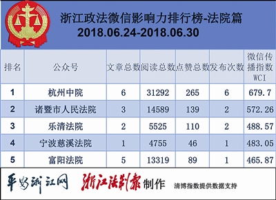 本期法院榜,前三分别是“杭州中院”“诸暨市人民法院”“乐清法院”,“杭州中院”的《林生斌等三原告诉绿城物业服务集团有限公司等九被告生命权纠纷一案情况通报》一文脱颖而出,看来读者对这个案件的关注度依然很高。
