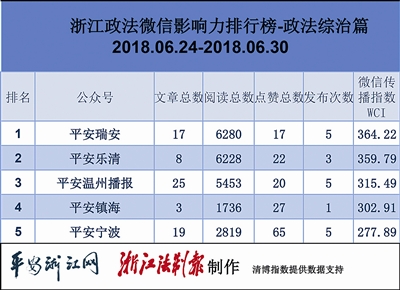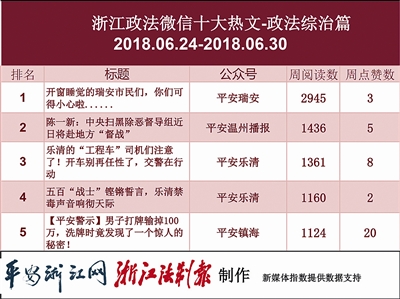 后起之秀“平安瑞安”奋勇直追,拿下本期政法委榜第一名;同时,《开窗睡觉的瑞安市民们,你们可得小心啦》这篇贴心的提醒文也霸占了热文第一的位置。