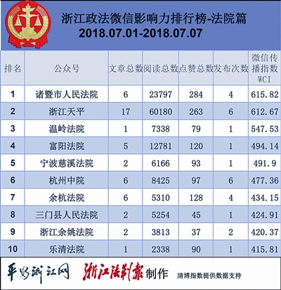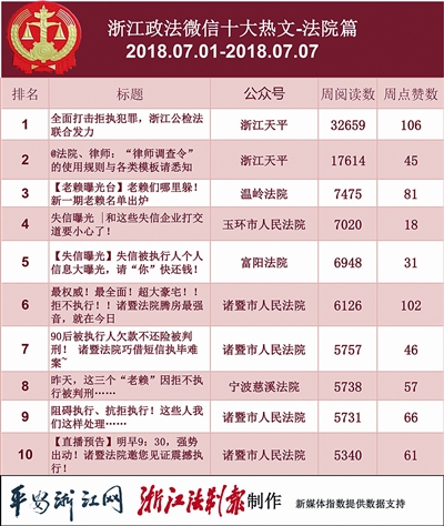 “浙江天平”发力,包揽热文榜前二,《全面打击拒执犯罪,浙江公检法联合发力》一文以3万+阅读数的成绩领先。网友点赞留言:公平正义让“老赖”无处遁身!