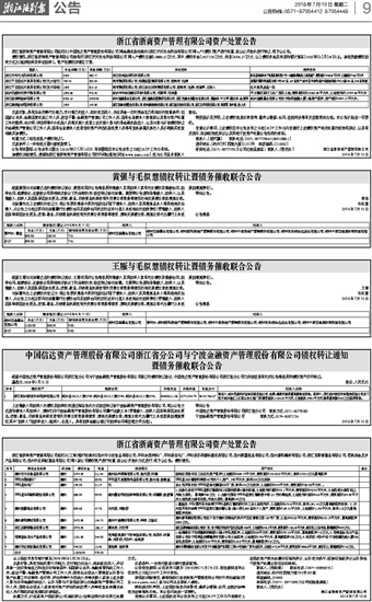 中国信达资产管理股份有限公司浙江省分公司与宁波金融资产管理股份有限公司债权转让通知 暨债务催收联合公告