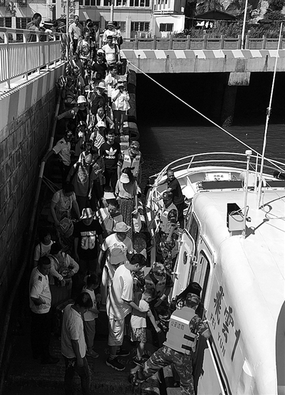 7月9日、10日,平阳南麂边防派出所安全疏散转移1218名游客,同时出动防台应急分队,对全岛各港口、岙口、码头、沙滩等危险地带进行巡逻检查。