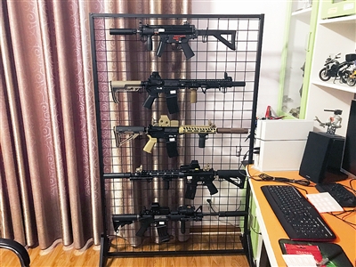 35岁的吴某是个军事迷,尤其喜欢枪械。当民警来到他家二楼的书房时,看到一侧的墙壁上整整齐齐摆放着他“淘”来的11把仿真枪和各式零部件,堪称小型的“枪械库”,经鉴定有6把为枪支。