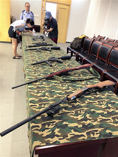 | 照片为警方展示缴获的部分非法买卖的枪支 |