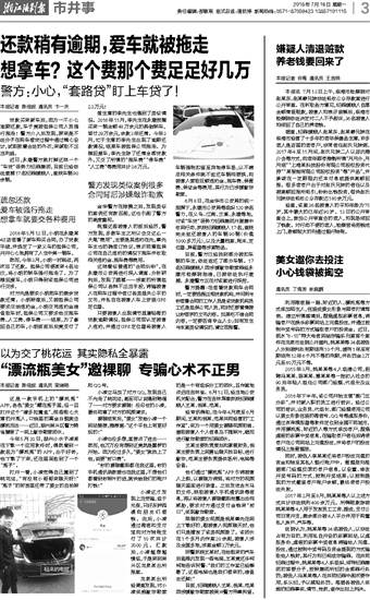 做生意的李先生也遇到了类似情况。2016年11月,李先生在永康按揭买来一辆全额48万余元的奔驰轿车,首付29万余元,余款3年还清。今年3月,忙于生意的李先生出现了逾期还款情况,结果车被担保公司拖走。为赎回爱车,李先生除了还清全部贷款外,又交了所谓的“拖车费”“停车费”“人工费”等费用共计3.6万元。