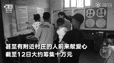 今年6月,山东潍坊金家口村一对夫妇遇车祸后丈夫身亡、妻子重伤。两人的大女儿刚参加完高考,此外家里还有两个年幼孩子。全村村民闻讯纷纷捐款,邻村人也来帮忙。村主任把善款10万元交给女孩后说:“你该报专业报专业,该上学上学。”