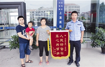 “如果没有你,我们可能都见不到自己的孩子了!”7月2号中午,一对年轻夫妻带着一名3岁大的孩子走进义乌市公安局上溪派出所,找到了正在工作的辅警吴光彬,夫妻俩激动地把一面写有“人民好警察,真心为百姓”的锦旗递给了他。