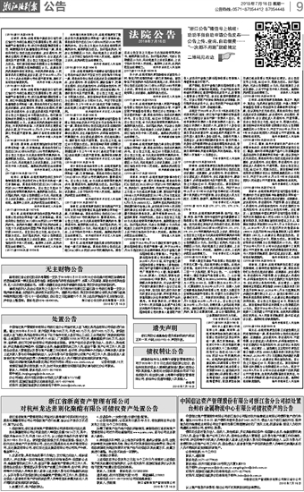 浙江省浙商资产管理有限公司 对杭州龙达差别化聚酯有限公司债权资产处置公告