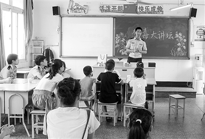 近日,浙江警察学院一大队“禁毒先锋”——2018大学生“三下乡”暑期社会实践团队来到诸暨育蕾小学,向孩子们宣讲禁毒知识。