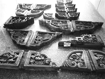 昨天,武义县公安局壶山派出所抓获一名专门盗窃古宅雕花构件的嫌疑人,缴获了23件雀替等古宅雕花构件。