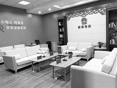 走进椒江区法院的家事审判专区,沙发、书橱、绿色植物、柔和灯光组成了这里的家事调解室。此外,这里还有放置着圆桌式审判台的家事审判法庭,以“孝道、家和、反家暴”为主题的家风文化墙,以及儿童游乐区、哺乳区亲子(母婴)室等功能区。