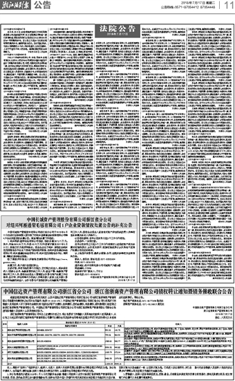 中国信达资产管理有限公司浙江省分公司 浙江省浙商资产管理有限公司债权转让通知暨债务催收联合公告