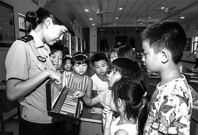 7月18日,武义县公安局白洋派出所民警协同禁毒社工和青少年宫志愿者,来到白洋街道东村,向留守儿童宣传平安知识。活动通过展板讲解、实物展示、互动游戏、发放资料等形式,为孩子作了防溺水、反诈骗、禁毒知识、交通安全等方面的宣传教育。