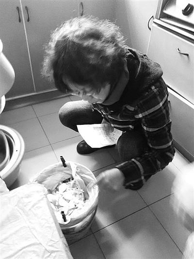 小区里会免费给每户居民发放丢厨余垃圾的绿袋子。但是总有人分不对。还有些人领的绿袋子用不完,就放到厕所和卧室装其他垃圾。这些都是我们要挨家挨户上门去检查的问题。