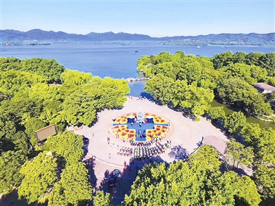 在杭州的第一次巡逻,就从西湖边开始。两位意大利警员换上短袖制服,轻装上阵。
