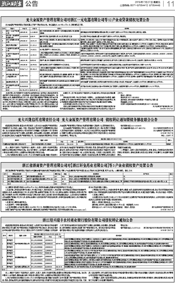 光大金瓯资产管理有限公司对浙江一元电器有限公司等12户企业贷款债权处置公告