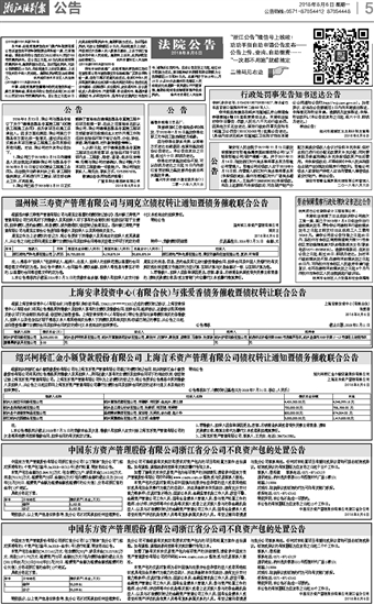中国东方资产管理股份有限公司浙江省分公司不良资产包的处置公告