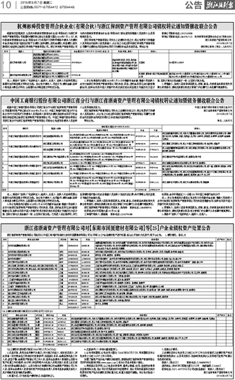 中国工商银行股份有限公司浙江省分行与浙江省浙商资产管理有限公司债权转让通知暨债务催收联合公告