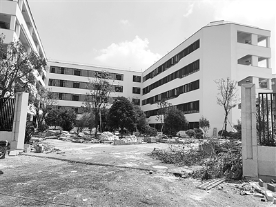 没有保安问询,记者毫无阻碍地走进了校区,看见有工人在粉刷外墙和绿化作业。已装修好的教室里,都已经放置了桌椅还有投影设备,黑板下面还摆着几盆绿萝,窗户大开,吊扇也开着通风。