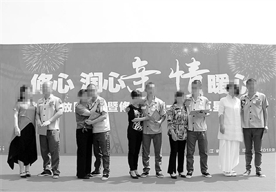| 获奖五星服刑人员和母亲合影 |