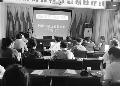 在区委理论学习中心组举办反邪教专题报告会的基础上,柯城区积极借助网格员培训班、入党培训班、公务员培训班、村两委培训班等时机,开设反邪教专题课程30多场次。该区还把5月20日确定为“党员干部反邪教教育活动日”,在全区200多个党支部深入开展“五个一”活动,即上一堂反邪教专题党课、看一场反邪教科教电影、召开一次反邪教主题生活会、签订一份反邪教承诺书、开展一批反邪教志愿者活动,营造了全社会抵御邪教的良好氛围。