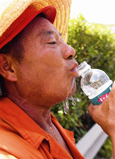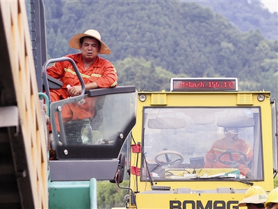 “越是高温天,我们越是不能停歇。”工人徐时仁告诉记者,铺筑路面的质量好坏跟沥青混凝土的固化速度有关,温度越高固化速度越慢,铺筑的路面质量也就越好,所以高速公路大面积的沥青路面铺筑都会选择七八月份,每天下午最高温的时间段更是黄金作业期,“我们休息也是见缝插针,只有摊铺机加沥青的时候能休息几分钟,大家可以吃块西瓜、抽根烟。”