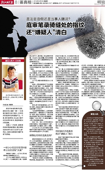 庭审笔录骑缝处的指纹 还“嫌疑人”清白