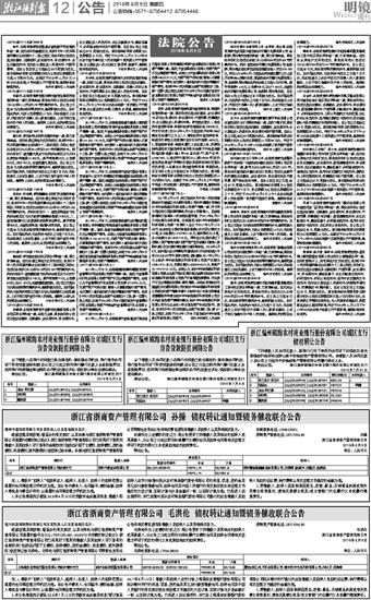浙江省浙商资产管理有限公司 毛洪伦 债权转让通知暨债务催收联合公告