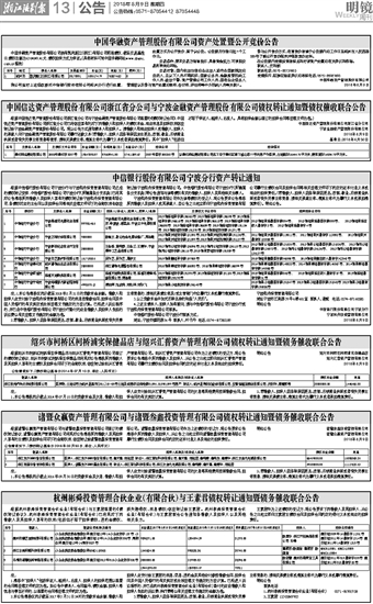 中国信达资产管理股份有限公司浙江省分公司与宁波金融资产管理股份有限公司债权转让通知暨债权催收联合公告