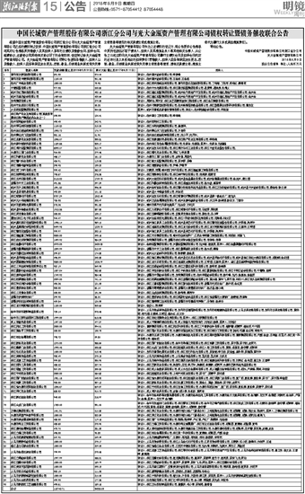 中国长城资产管理股份有限公司浙江分公司与光大金瓯资产管理有限公司债权转让暨债务催收联合公告