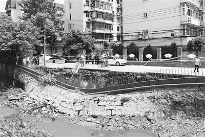 本报讯 8月9日9时45分许,杭州保俶北路海洋二所公交车站附近西溪河对岸的堤岸发生坍塌,事故导致停在路边的2辆轿车陷入。