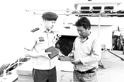 本报讯 为了给渔船过户,近日,“浙嘉渔运29181”号船主朱云来到嘉兴乍浦边防派出所办理相关手续,2天后,他一次性拿到了过户船舶的手续,这让他十分满意。