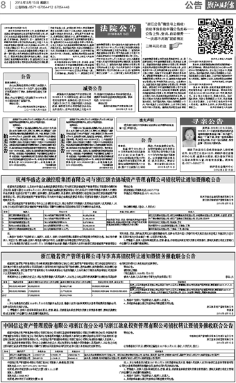 中国信达资产管理股份有限公司浙江省分公司与浙江盈泉投资管理有限公司债权转让暨债务催收联合公告