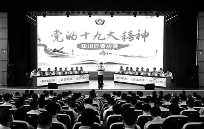 为深入学习贯彻党的十九大精神,进一步提升民警的政治理论素养,省临海监狱开展党的十九大精神知识竞赛,这也是监狱学习宣传贯彻党的十九大精神“八个一”的规定动作之一。初赛前期,组委会统一录入了由110道十九大精神知识题组成的题库,并通过警务通短信,每天定时发送知识点,方便民警利用“碎片化”时间学习。初赛期间,依托监狱“智慧版”网络学院,所有考卷与成绩均由电脑自动生成,真正做到在线考试与评卷,实现“无纸化”考试。全监15个党支部均组织代表队参加比赛,其中6支代表队进入决赛。
