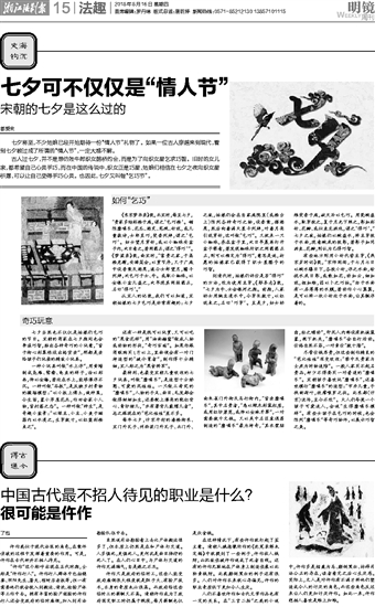 浙江法制报 法趣 00015 七夕可不仅仅是“情人节” 2018-08-16 2 2018年08月16日 星期四