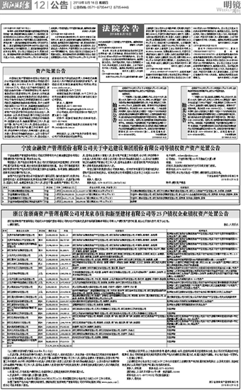 浙江省浙商资产管理有限公司对龙泉市佳和新型建材有限公司等25户债权企业债权资产处置公告