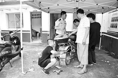 近日,三门县沙柳街道的居民、外来务工人员等,纷纷骑着电动车,来到沙柳派出所,给自己的车子登记上牌。